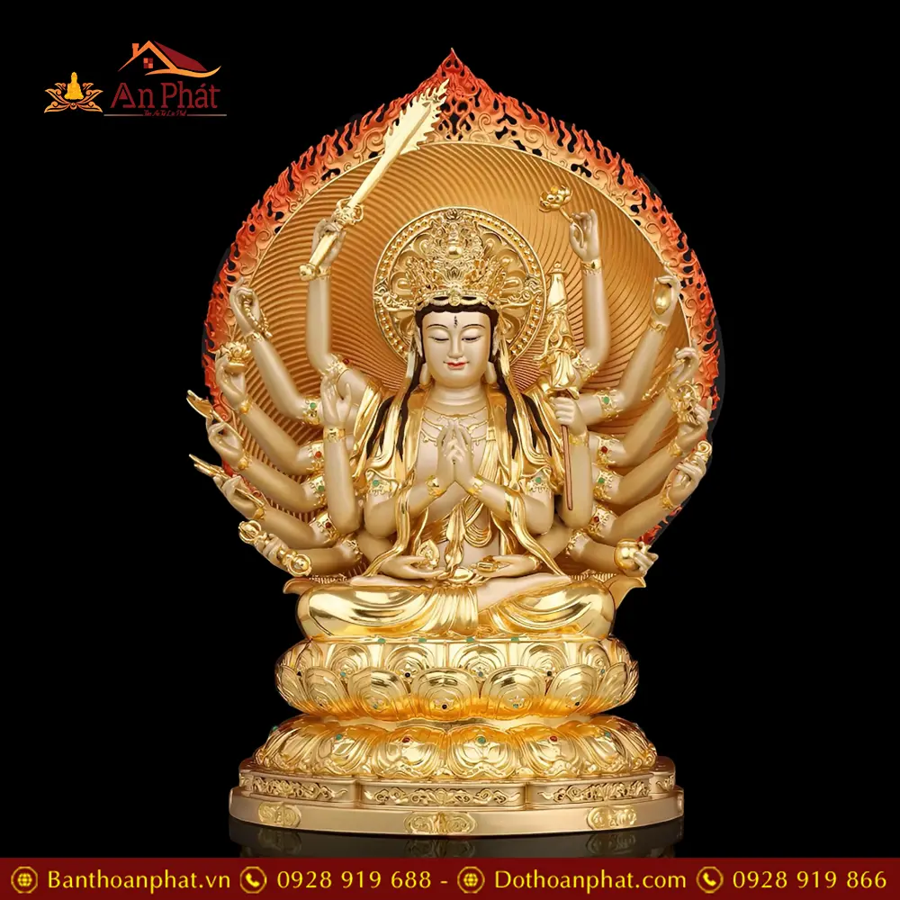 Tượng Bồ Tát Chuẩn Đề Đồng Cao Cấp Dát Vàng Nhập Khẩu T2700