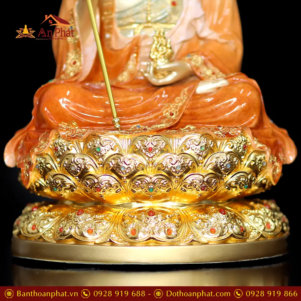 Tượng Địa Tạng Vương Bồ Tát Ngồi Đài Sen Có Lá Đề Bằng Đồng Sơn Men Độ Cao Cấp T2638