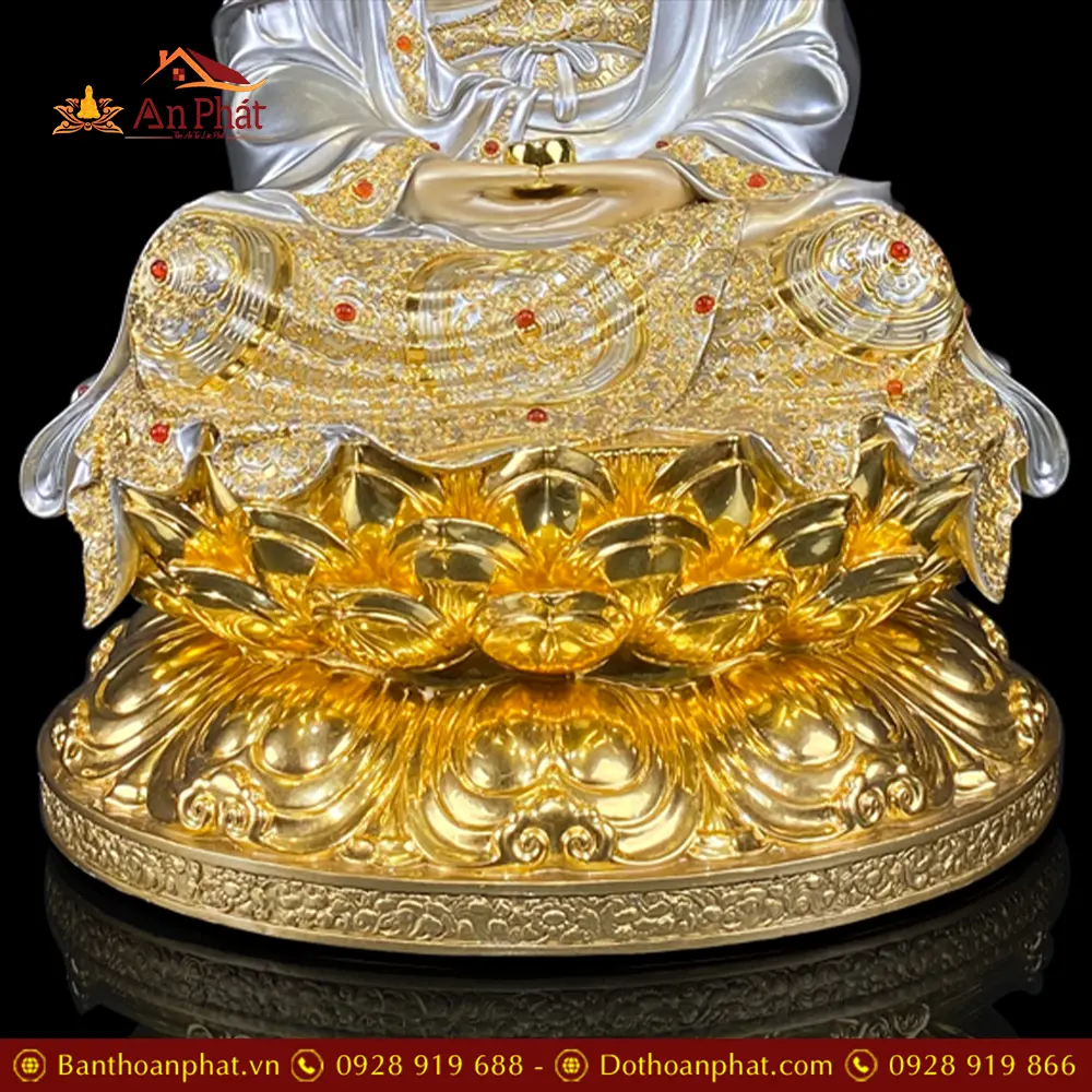 Tượng Phật A Di Đà Bằng Đồng Men Cổ Sơn Bạc Cao Cấp T2537