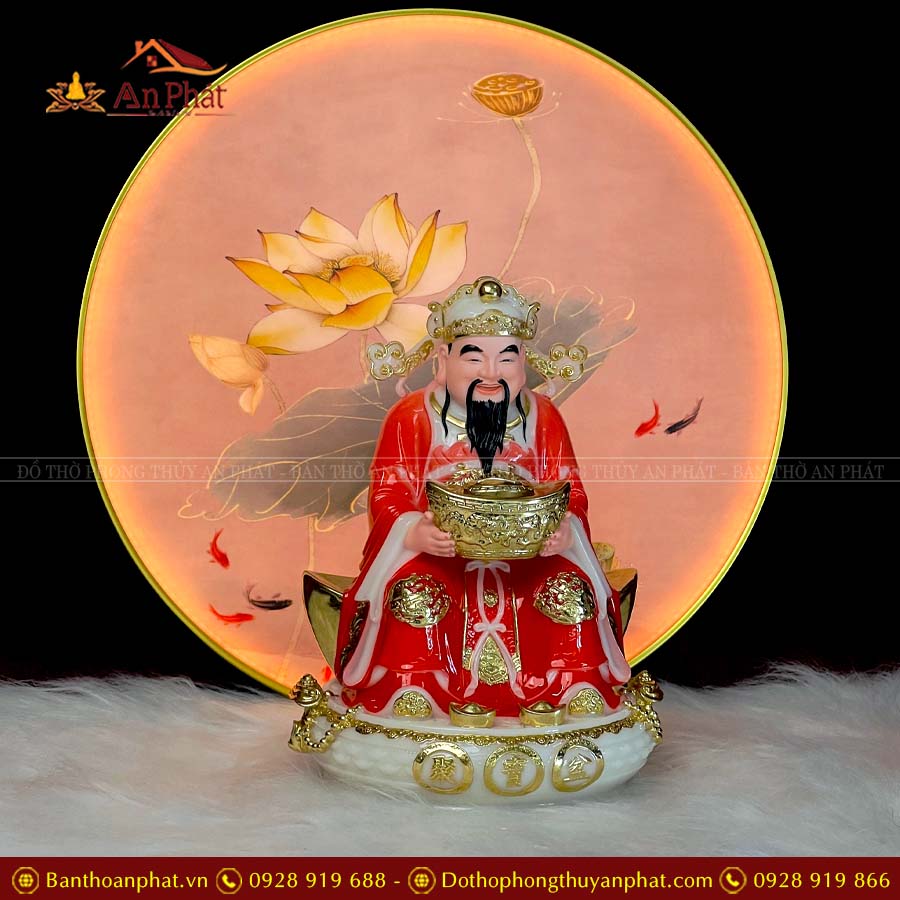 Tượng Thần Tiền Thần Tài Đá Đỏ Đế Tròn Cao Cấp T057